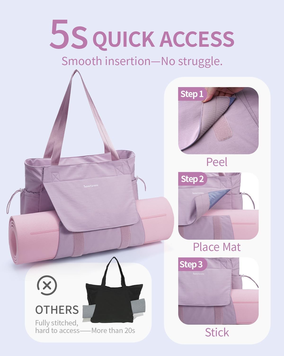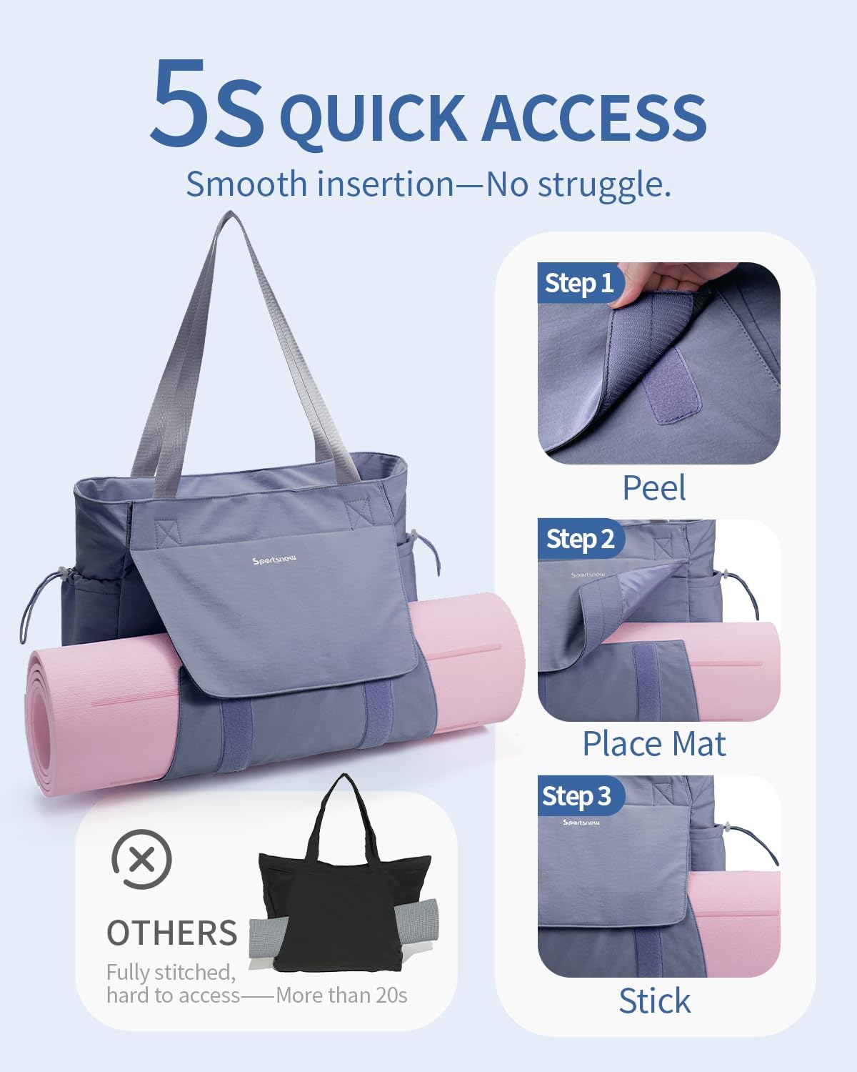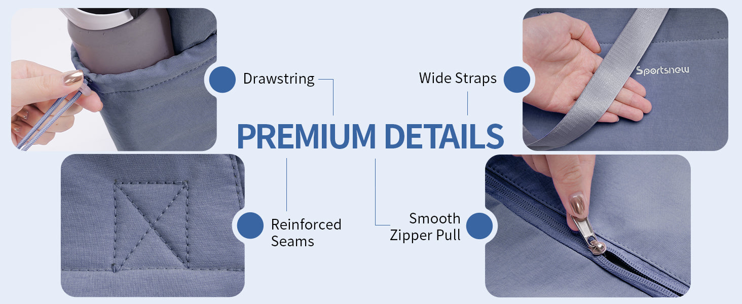 • 【柔软面料&轻盈携带】这款手提瑜伽包仅重 530 克(1.16 磅),比一瓶矿泉水轻。 旅行时不会增加重量;您可以轻松携带所有瑜伽装备,无论您走到哪里,都能轻松享受舒适。
