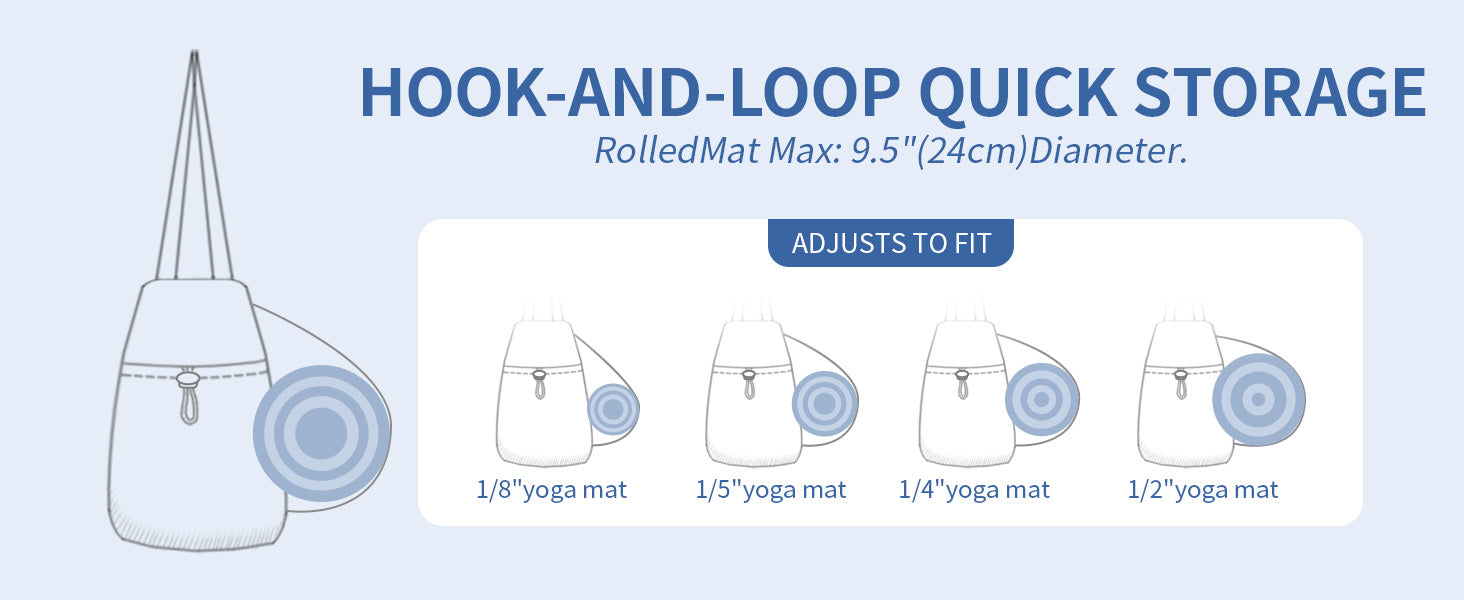 • 【5S 快速取用和适合各种厚度】这款手提包瑜伽健身包无需费力地适合您的瑜伽垫。 我们的钩环设计让您在短短 5 秒内固定瑜伽垫(比普通款式快得多),并且可以适合不同厚度的瑜伽垫(1/2、1/4、1/5、1/8 英寸)。 (不包括瑜伽垫和水壶)